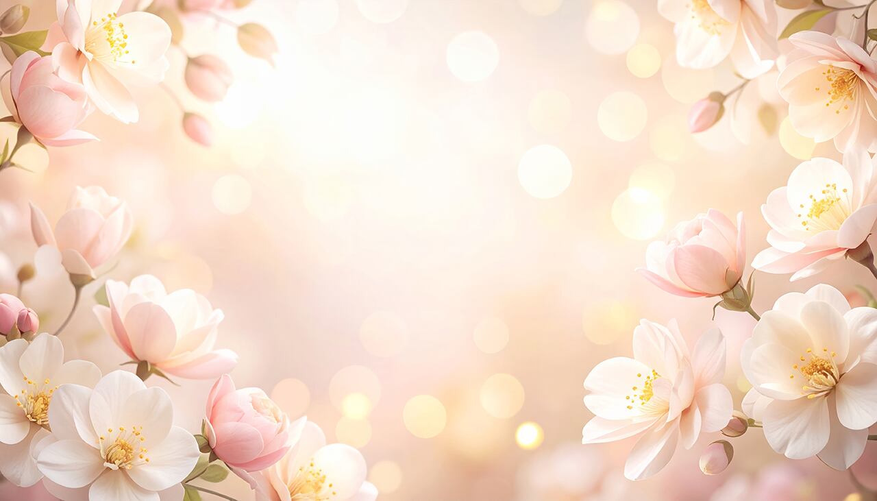 桜の花と柔らかな光が調和した、春らしいやさしさを感じる背景素材。