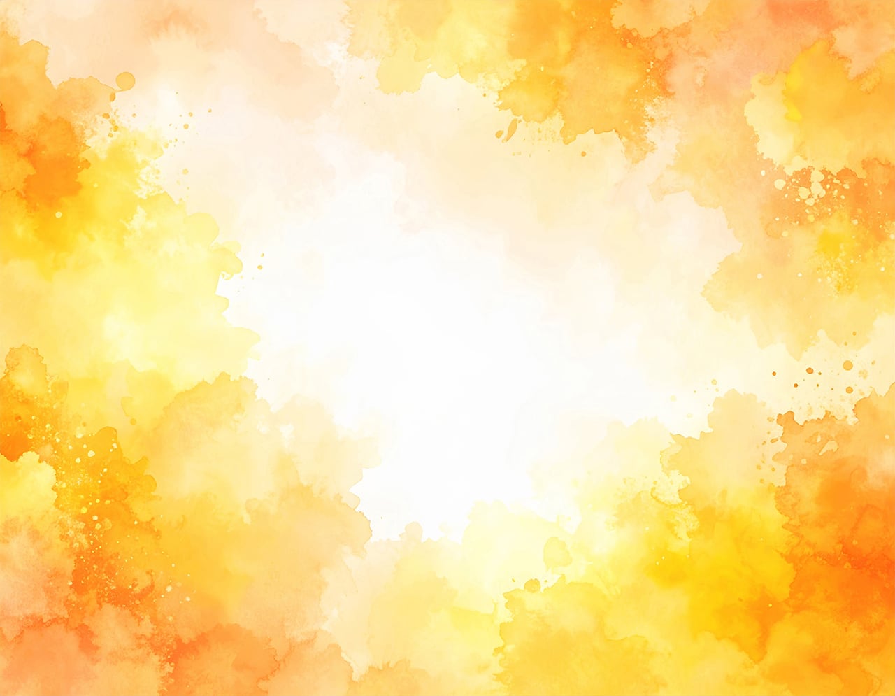 鮮やかなオレンジとやわらかなイエローがにじみ、飛沫がアクセントとなった躍動感のある水彩背景素材です。